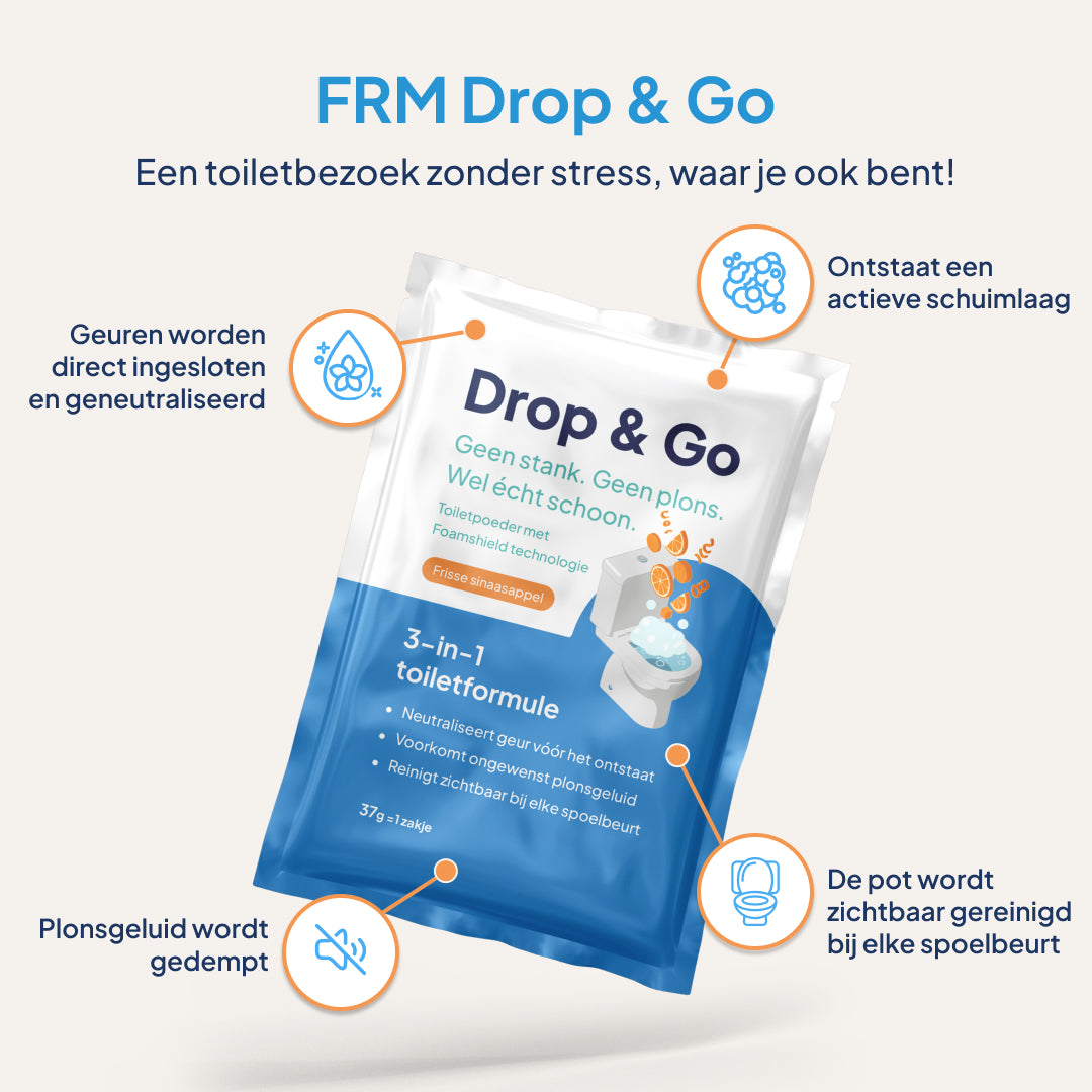 Na het doorspoelen even twijfelen... Ruikt het wel fris? Met Drop & Go hoef je daar nooit meer over na te denken. Altijd een fris en discreet toiletbezoek. Thuis, onderweg of op werk.
