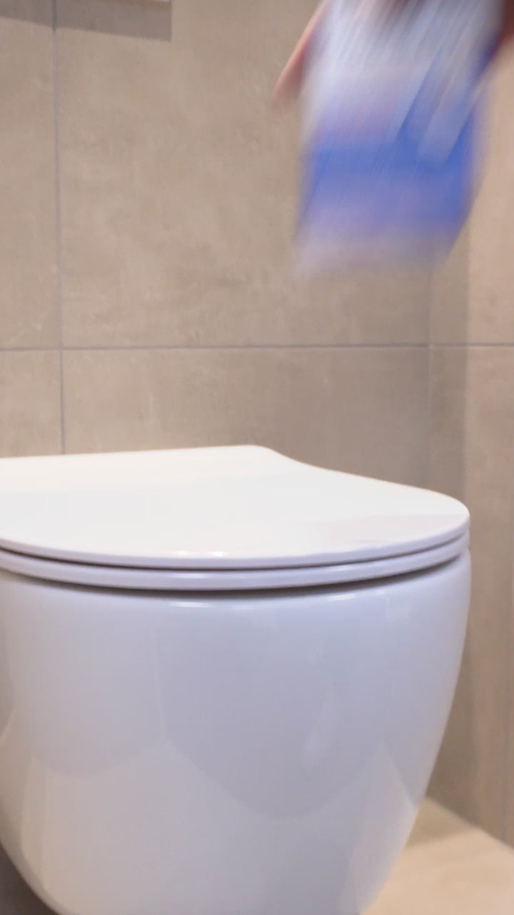 Bij elke spoeling activeert Drop & Go automatisch en helpt kalkaanslag en vuil verminderen. Zo blijft je toilet fris en hygiënisch, zonder extra schoonmaken. Laat een subtiele frisse sinaasappelgeur achter.